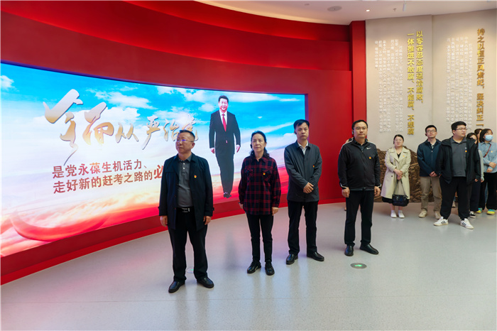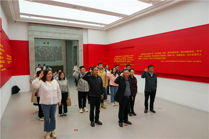 参观结束后,全体党员来到宣誓厅,面向党旗、高举右手,重温入党誓词,内心更加坚定廉洁自律、永不贪腐的信念。